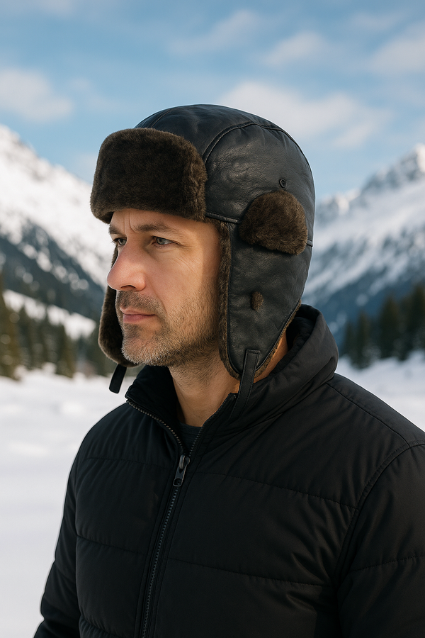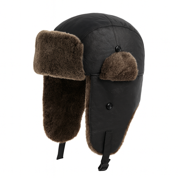 Chapka Aviateur en Simili Cuir et Fausse Fourrure